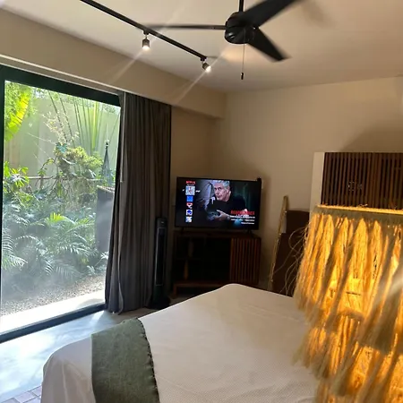 El apartamento brinda servicios de autoservicio con una cocina completa y un comedor al aire libre y una zona de comedor. Los huéspedes pueden cenar en Restaurante Bejuco, a unos 500 metros de la propiedad. Se tardan 54 minutos en coche en llegar al aeropuerto Nacional de Playa del Carmen.